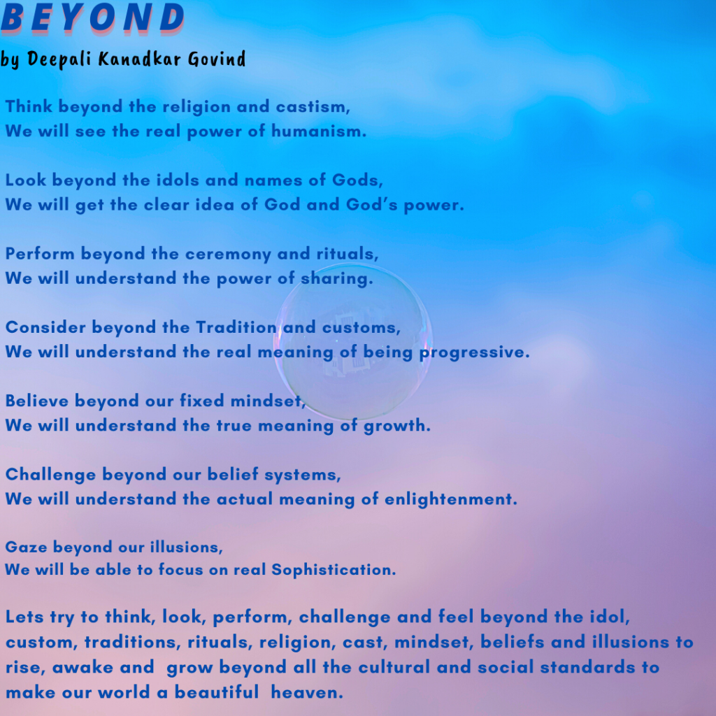 Beyond by Deepali Kanadkar Govind | Posted on December 6, 2020June 10, 2021 Email Facebook WhatsApp Twitter LinkedIn Pinterest How useful was this post? Click on a star to rate it! Submit Rating Average rating / 5. Vote count: No votes so far! Be the first to rate this post. Views: 5,012