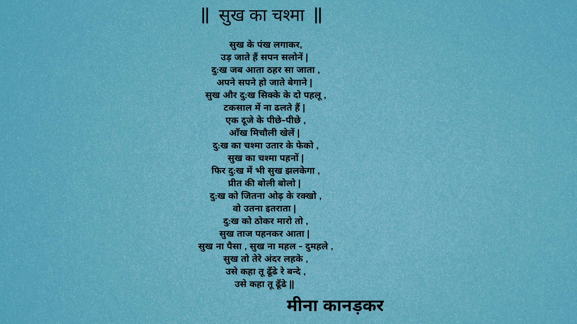 || सुख का चश्मा || by Deepali Kanadkar Govind | Posted on March 26, 2021September 11, 2021 Email Facebook WhatsApp Twitter LinkedIn Pinterest How useful was this post? Click on a star to rate it! Submit Rating Average rating / 5. Vote count: No votes so far! Be the first to rate this post. Views: 125,518